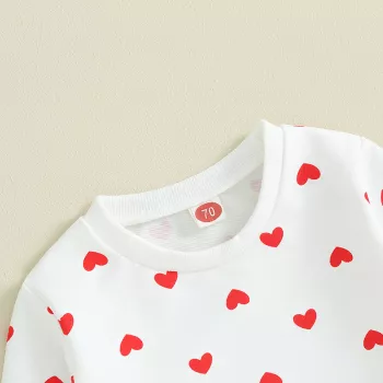 Baby Girl Heart Print 2-Piece Fall Outfit – Long Sleeve Sweatshirt & Sweatpants Set