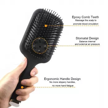 Black Air Cushion Paddle Comb - Anti-Static Scalp Massage Hair Brush