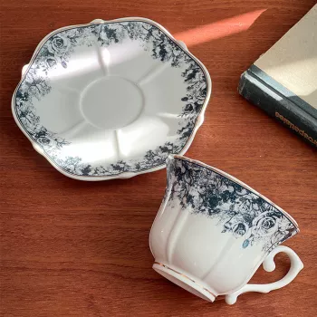 Elegant Nordic Blue & White Porcelain Coffee Mug with Gold Rim