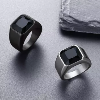 Men’s 12mm Square Signet Ring with Black Onyx & Multicolor Gemstones