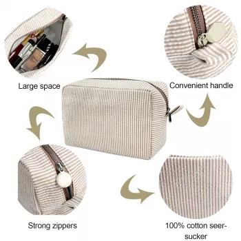 Seersucker Makeup Bag – Monogrammed Cosmetic & Toiletry Pouch