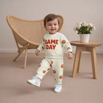 Toddler Boy Fall Outfit 2-Piece Set – Embroidered Pullover & Basketball Pants